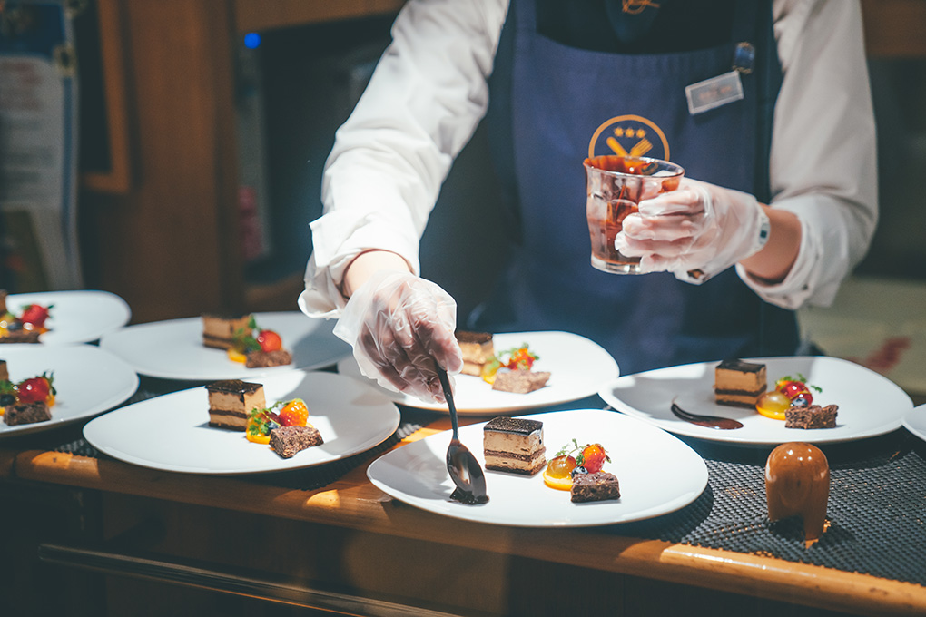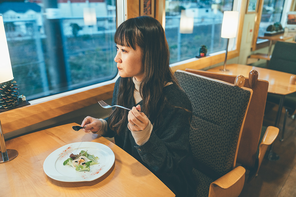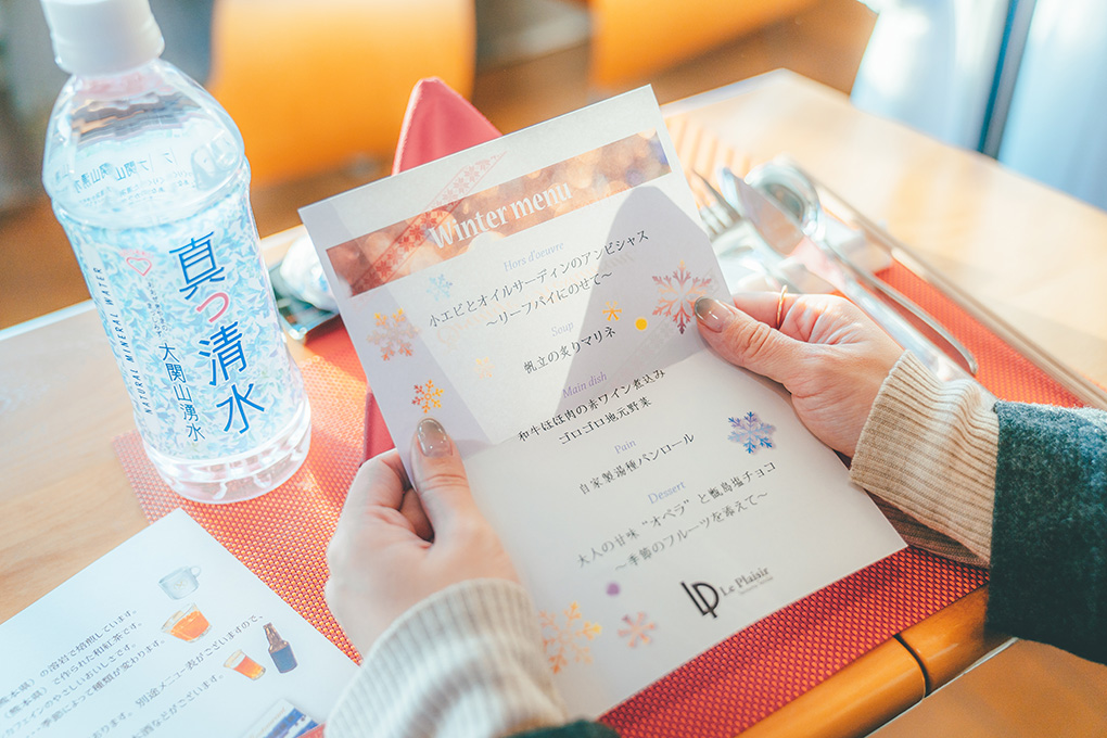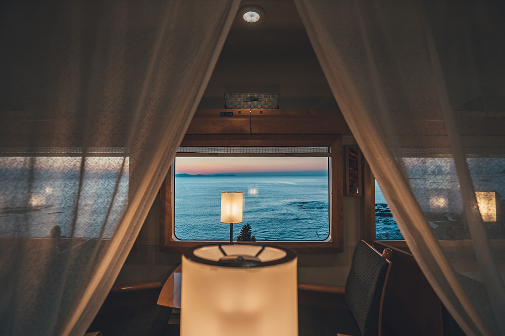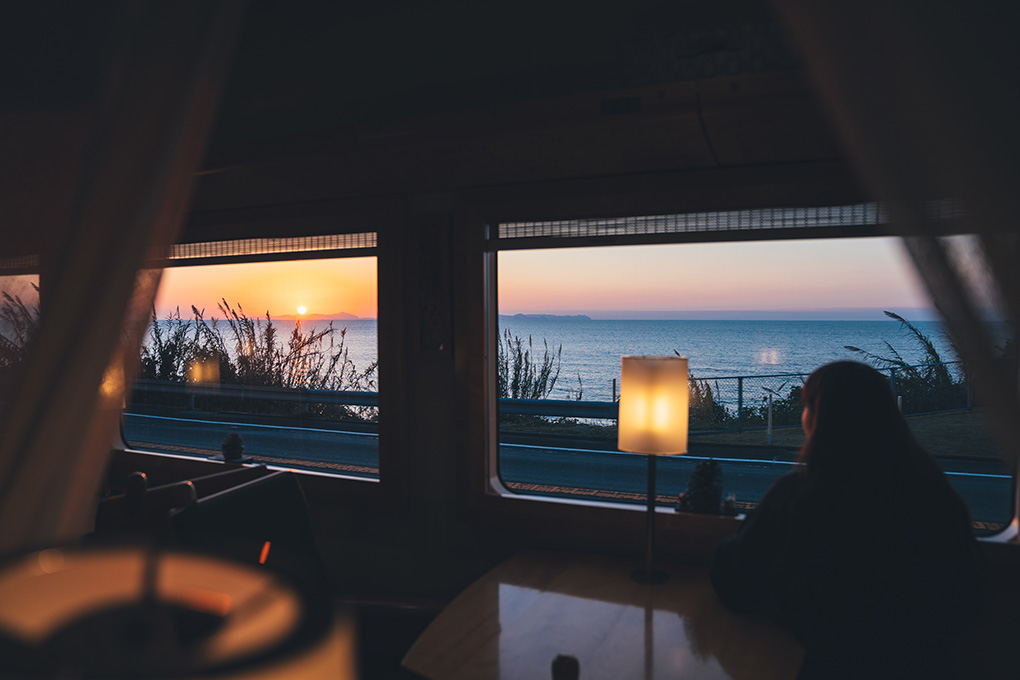 沿線市町のご当地食材を使用したコース料理を堪能しながら、車窓から見る海に沈む夕日はまさに絶景。